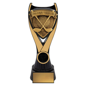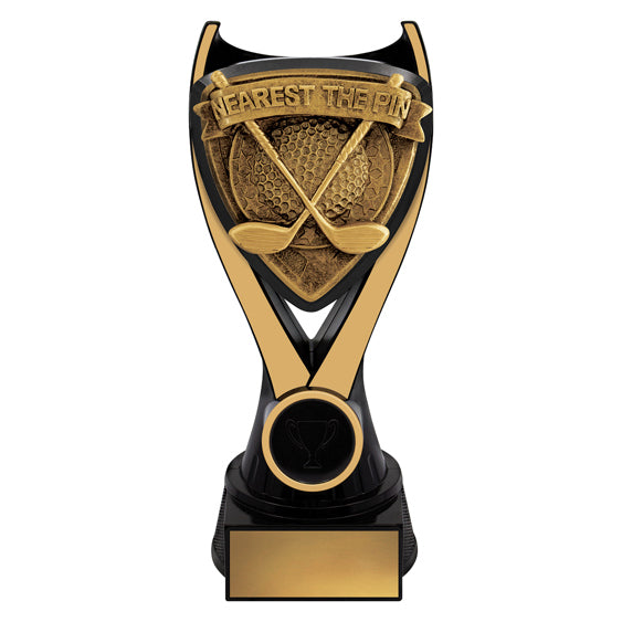 Nova series of trophies present a unique black & gold colour combination with a bold 3D type design to really celebrate the sport or activity of your awards.