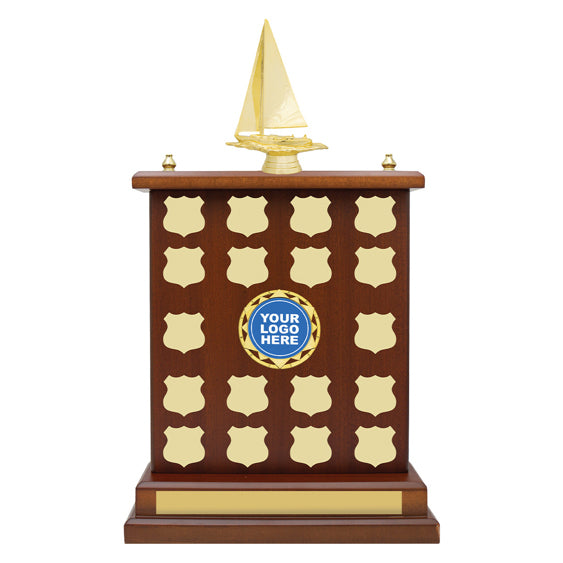 Outstanding perpetual trophy with ample space for your engraving - select holder for your logo and top for your sport or activity.